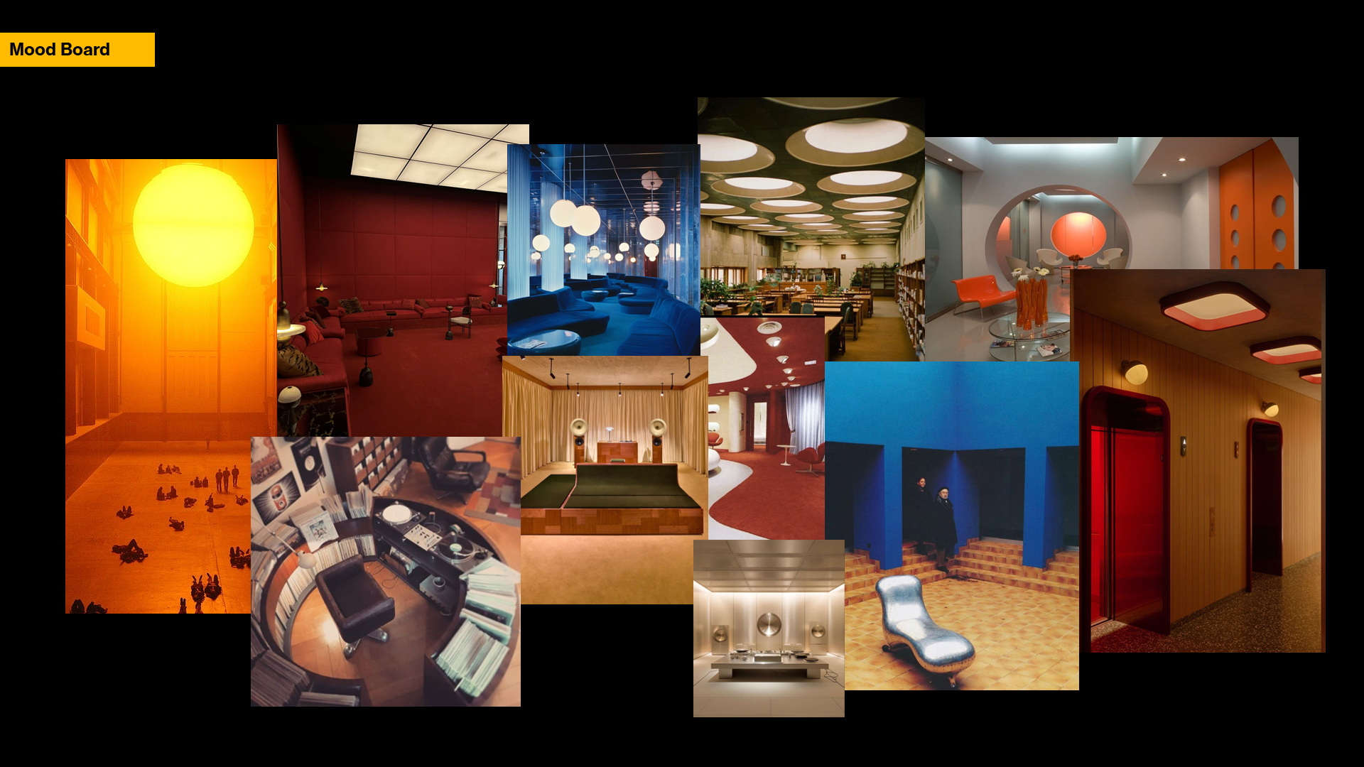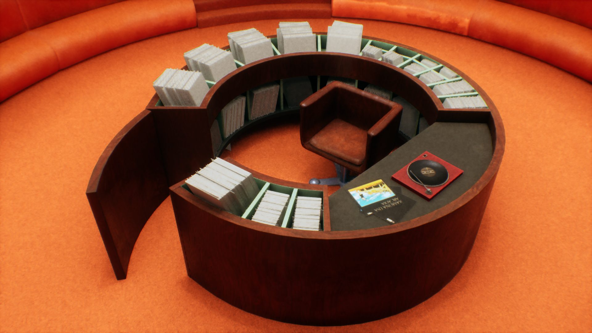 This work is inspired by the design and aesthetics of the 1960's-1970's and pairing it with the concept of a listening room, an esoteric space designed specifically to listen to music with good acoustics and such.